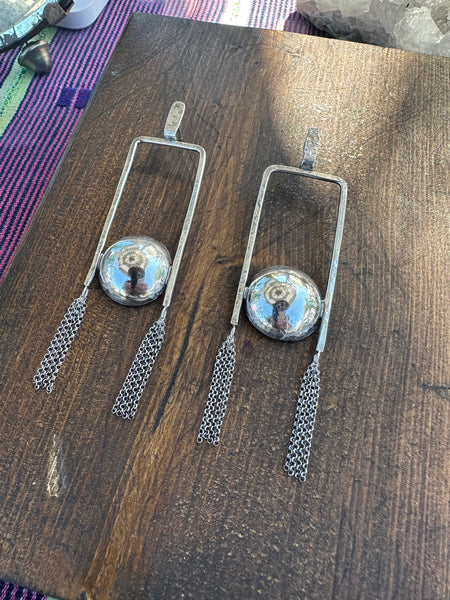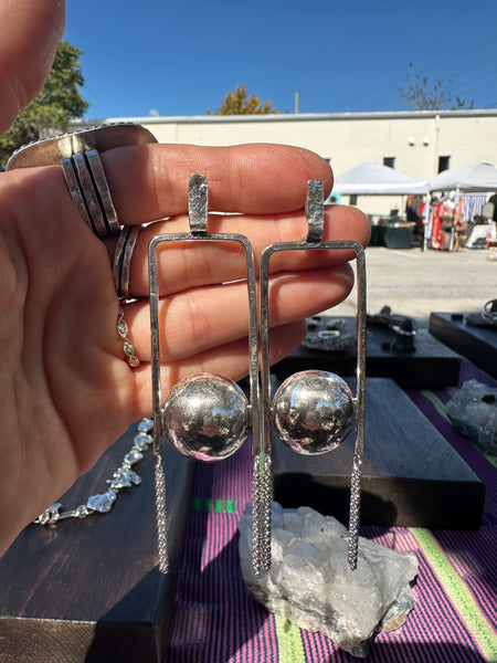 Loving this pair! They are completely handmade with sterling silver. Every piece is hand cut, formed and textured. They are finished with sterling silver posts and sturdy rubber backs. You need them x